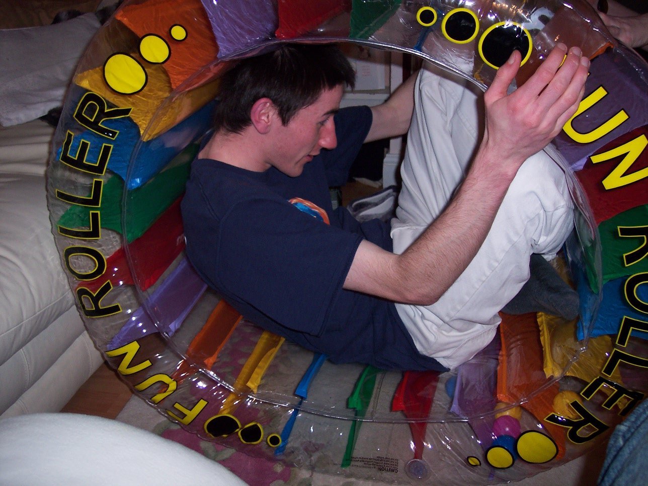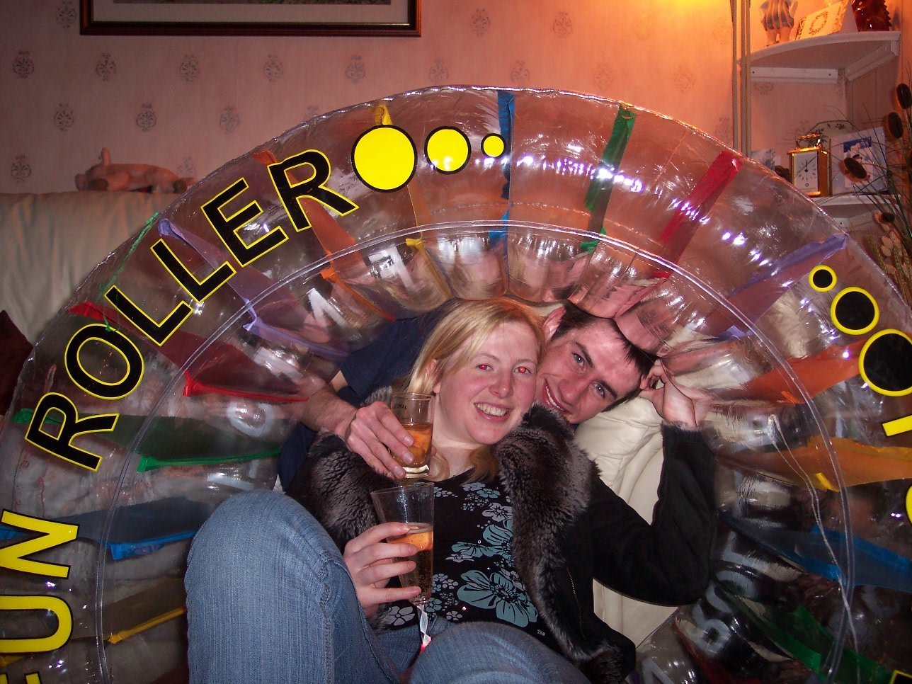 Once they arrived, the celebrations began, and the buffet went down a treat! Of course, I was in charge of the hot stuff, while our hostess put up her feet. We did worry that the Pimms had been spiked, as Alex was somewhat giddier than usual - and believe me, that's very giddy ;-). Andrew went quickly onto the hard stuff, supping a glass of some WKD shot stuff, among other things. He then unsuccessfuly tried to persuade us to turn on some smutty sex programme... Much fun was had with Alex's hamster wheel, once we managed to inflate the thing - Carl's pumping action was particularly good!
