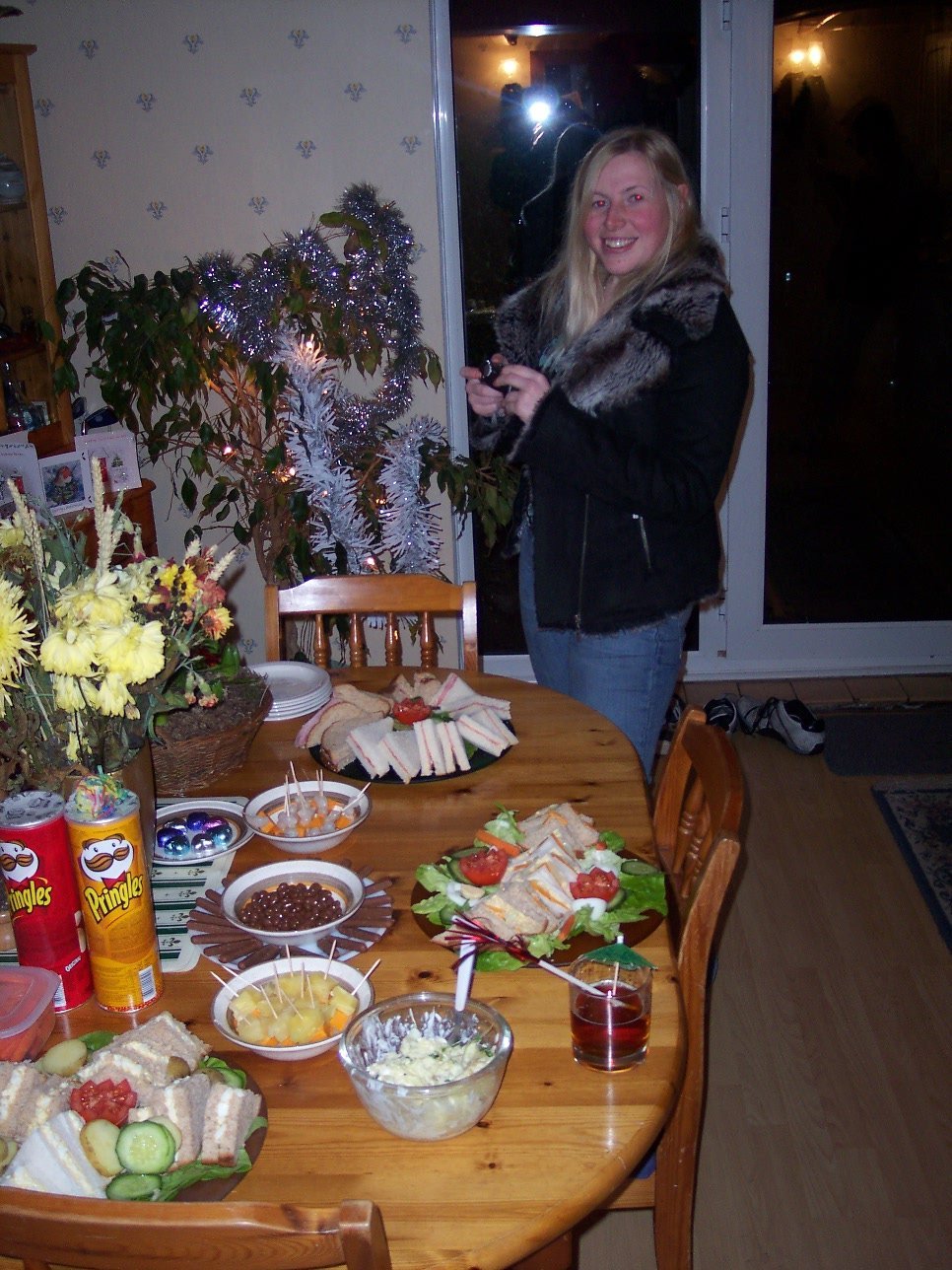 On New Year's Eve, Alex picked me up in the afternoon, so that I could help her prepare the buffet - or so she told me. We went to morrisons first, for some last minute items, but once we got back to Alex's, I was shoved in the other room to read my newly acquired Japanese books, so that I wouldn't be 'under her feet'. Not that I cared; I was in the warm living room by the fire! Anyway, at about 5.30 we headed out to pick up Carl, and stopped by mine to collect my camera - an essential item! When we got back, we enjoyed some Pimms and lemonade cocktail, and admired the buffet, while we waited for Amanda and Andrew to arrive.