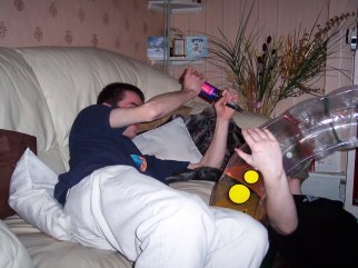At about half past midnight, Amanda and Andrew left to go home, and after we tidied up and had a few more drinks, Alex soon decided to retire. So Carl and I found an Eddie Izard video to amuse us. By the time we'd watched this, it was 3am, so I called for a taxi (Carl was staying over), and reluctantly forked out 12 to get home. All in all, a good night!