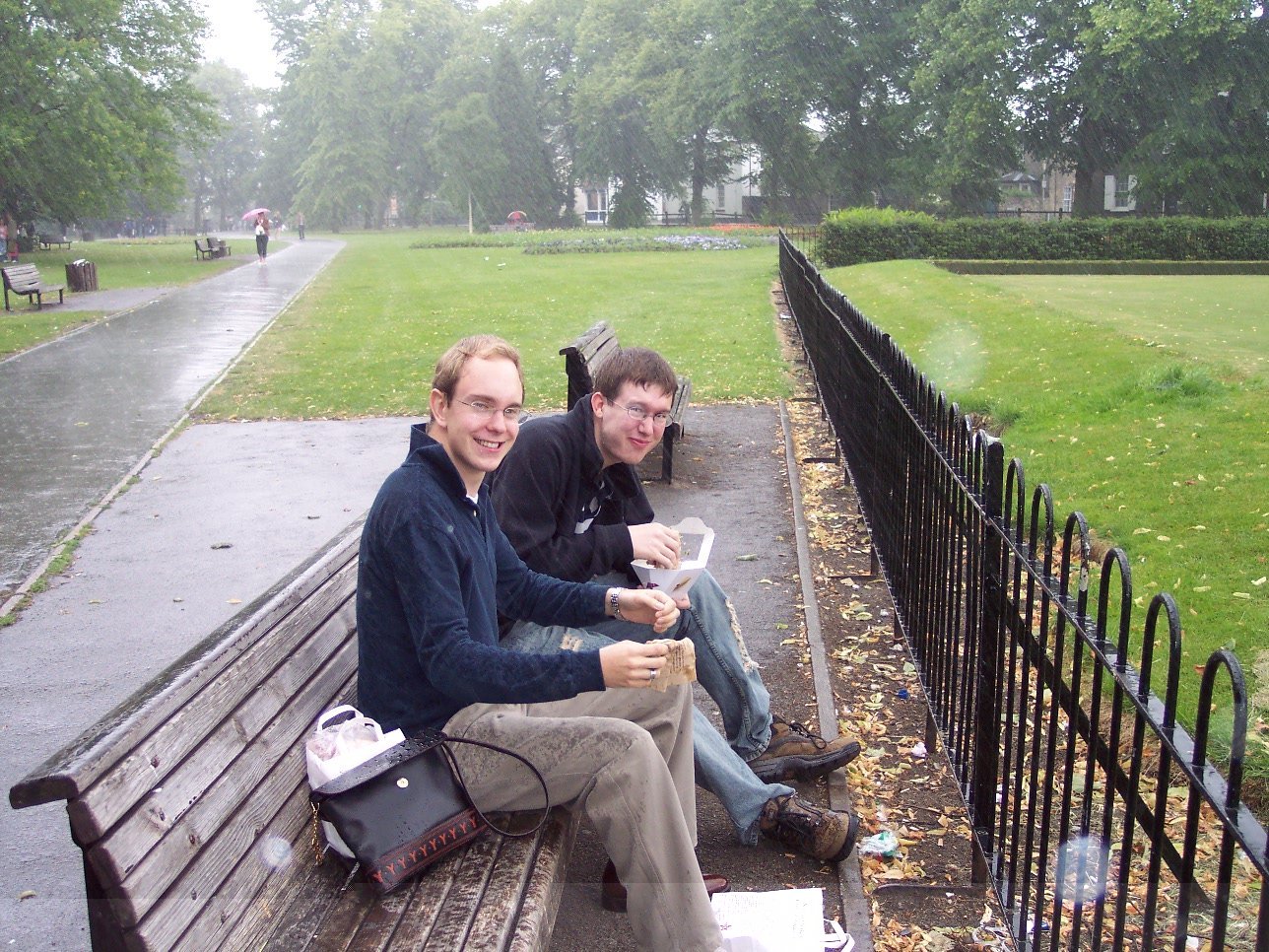After the survivors photo at about 5:30am, we headed home, meaning that I got to bed at around 6:30am. We didn't get up until early afternoon the next day, when Andrew gave me and Alex a lift into town. We grabbed lunch from Pret, and headed over to Christ's Pieces for a sit down. Unfortunately, the heavens opened up, and there we were sat, getting wet. Luckily, the clouds cleared very quickly, and we had a wander through town, before heading over to college to get a copy of the survivors photo for Alex. That done, we went over to Queens, to the SciSoc garden party. This was informal, but very pleasant, given that the weather had turned for the better. We then went for an Indian at the Curry Mahal, and ended up ordering way too much (two poppadoms, a starter, and main course each). We therefore left rather stuffed, and waddled over to the Vue cinema, to see Harry Potter (which Alex had yet to see).