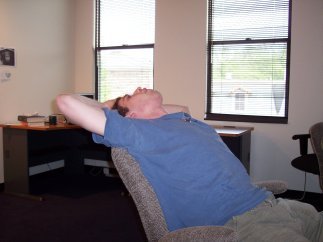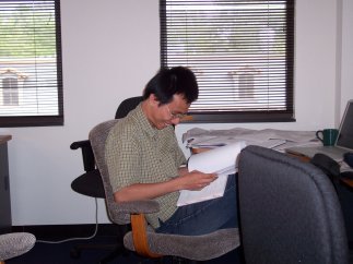 This evening, in fact, was the Princeton firework display; an early celebration of this war that we, ummm... lost. Not that that means we can't enjoy the fireworks. The evening began in the office, with my hard working colleagues pictured below. As you can see, Chee Wei is working hard as ever, whilst John is demonstrating the effects of too much NFS hacking.