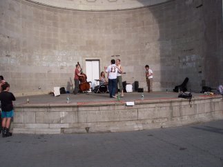 Quite luckily, we'd arrived on a day when there were lots of musical events going on. People skating to music, a jazz/swing band, a rock concert, break dancing - it was all happening, and all free (modulo well-deserved donations).